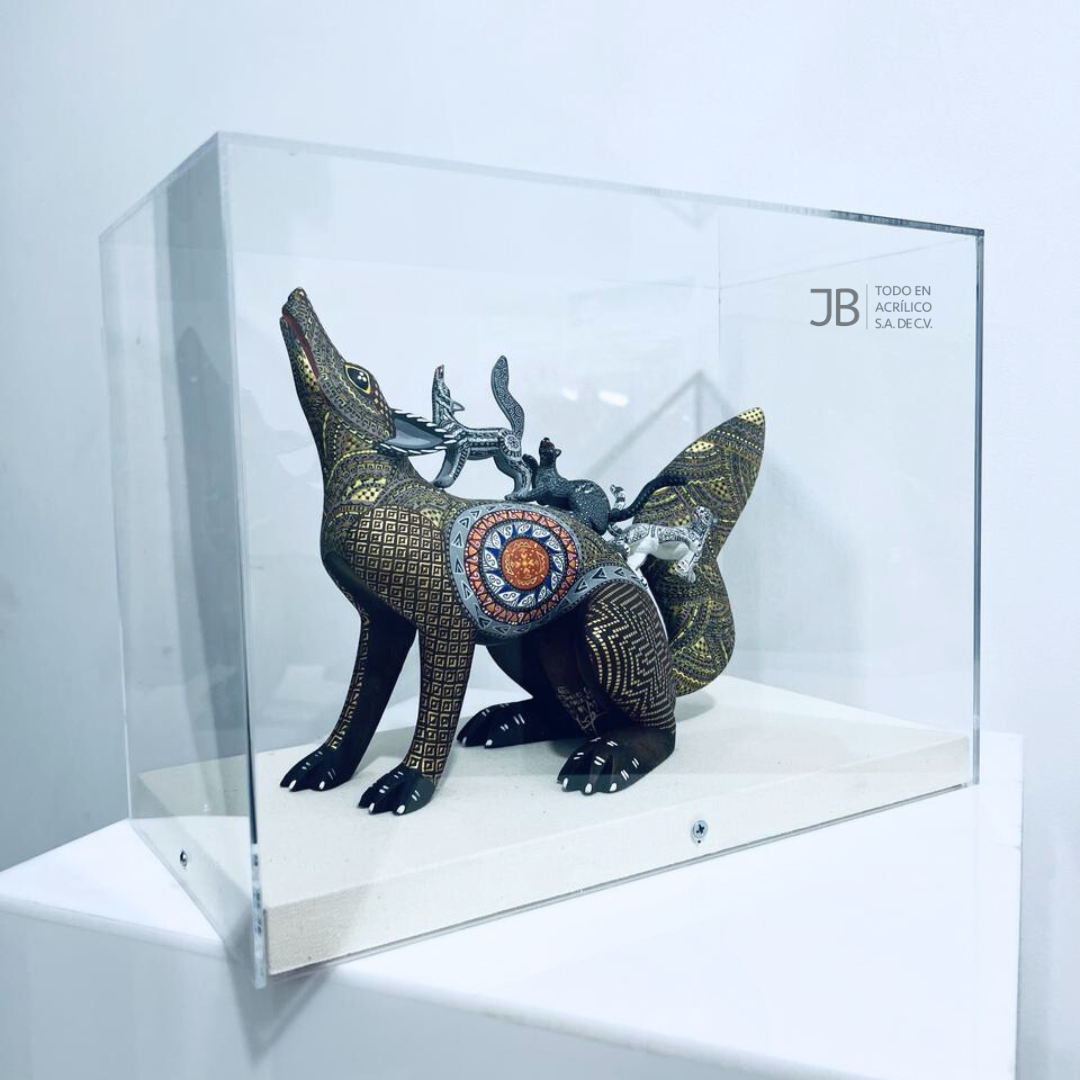 Destaca tu pieza con elegancia y calidad en nuestros innovadores exhibidores tipo capelos con bastidores de madera o acrílico.